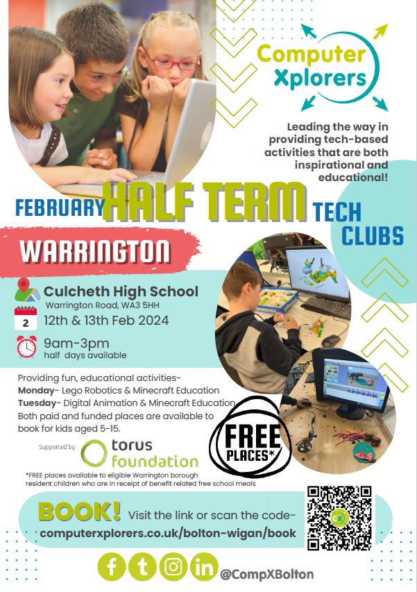Please see details from Computer Xplorers who are running a holiday club during February half-term. Both paid and funded places are available. Thank you