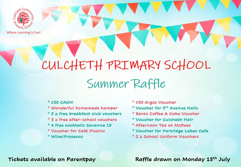 Tickets are now for sale on ParentPay for our Summer Raffle. We have some fabulous prizes, £1 per ticket, buy as many as you like! The raffle will be drawn on Monday 15th July. Thank you